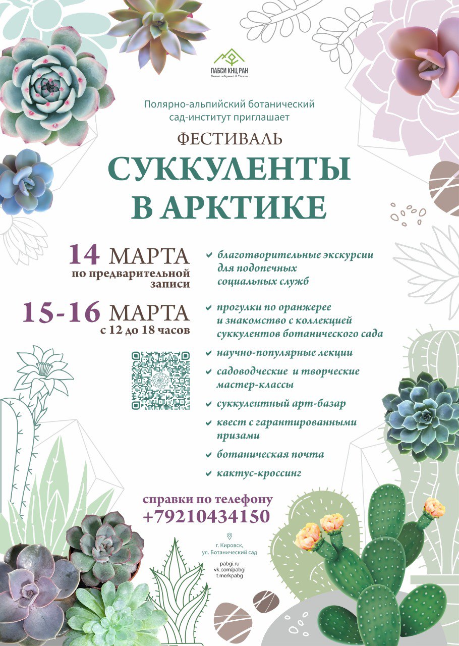 Фестиваль «СУККУЛЕНТЫ В АРКТИКЕ» объединяет цветоводческие знания специалистов и любителей, науку и творчество, взрослых и детей! И конечно дарит возможность лично познакомиться с растениями засушливых территорий прямо среди снегов Кольского Заполярья!