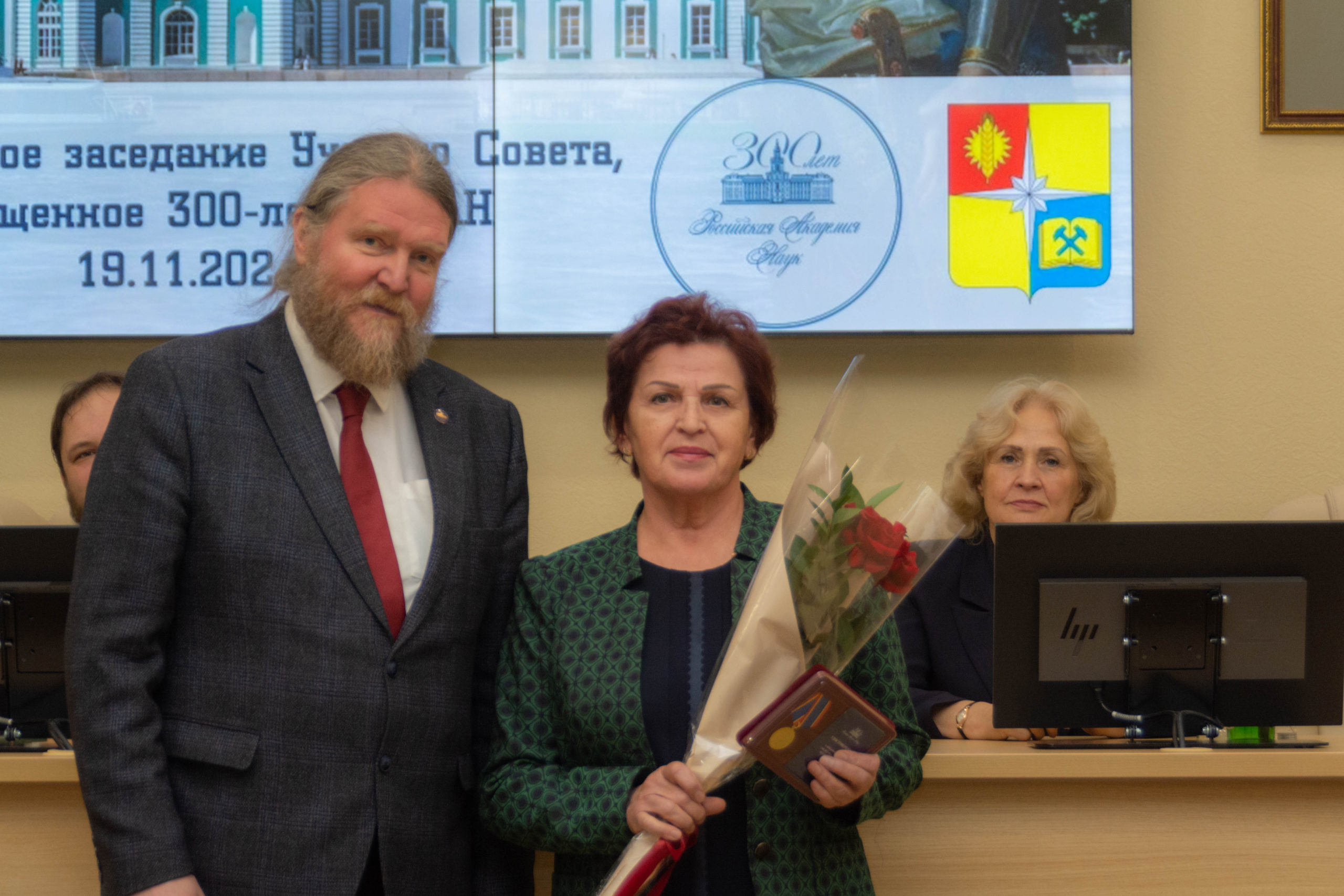 19 ноября на торжественном заседании Ученого совета Кольского научного центра генеральный директор КНЦ РАН, академик РАН Сергей Кривовичев наградил юбилейной медалью «300 лет Российской академии наук» выдающихся ученых. Этой медали удостоились сотрудники Полярно-альпийского ботанического сада-института им. Н.А. Аврорина: профессор, доктор биологических наук, главный научный сотрудник Лаборатории флоры и растительности Надежда Константинова, доцент, доктор биологических наук, руководитель Группы экспериментальной энтомологии Наталья Рак и доцент, доктор биологических наук, главный научный сотрудник Лаборатории декоративного цветоводства и озеленения Любовь Иванова.