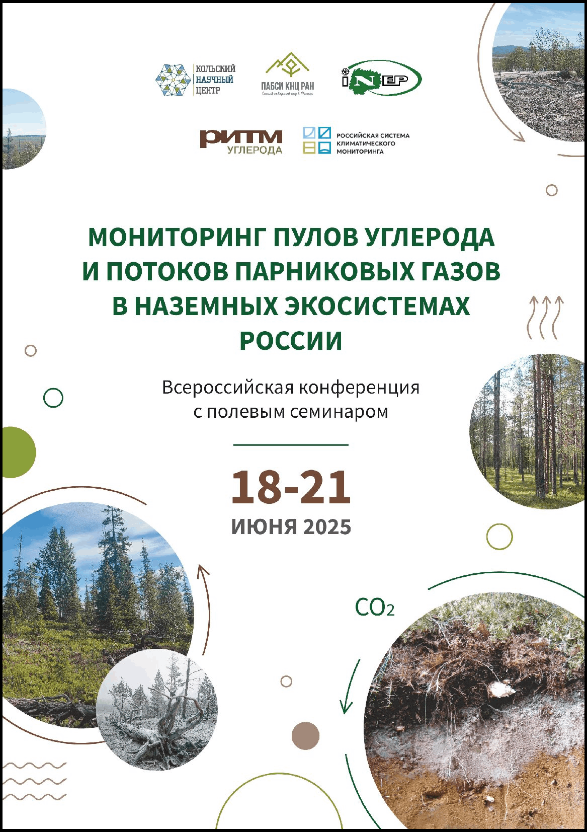 Мониторинг пулов углерода и потоков парниковых газов в наземных экосистемах России / Тезисы докладов Всероссийская конференция с полевым семинаром. Апатиты, Мурманская область, 18–21 июня 2025 г. / Под ред.: Е. А. Боровичёв, Д. А. Давыдов, Т. А. Сухарева Апатиты: Изд-во ФИЦ КНЦ РАН, 2025. 62 с. ISBN 978-5-91137-539-3