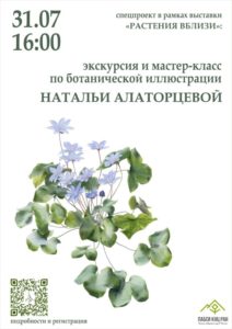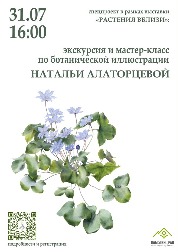 31 июля в 16:00 приглашаем принять участие в специальном проекте Полярно-альпийского ботанического сада и автора выставки акварелей и линогравюр «РАСТЕНИЯ ВБЛИЗИ» ботаника и художника Натальи Алаторцевой. Это ботаническое путешествие, плавно превращающееся в мастер-класс по акварельной ботанической иллюстрации. Почувствуй себя исследователем и художником одновременно!