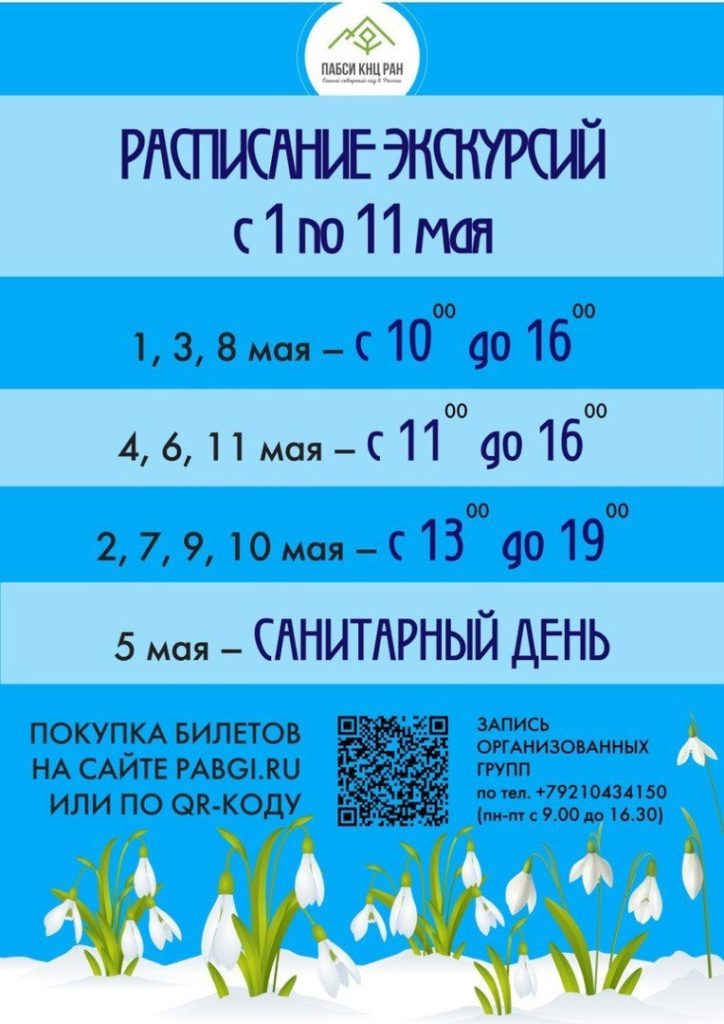 Изучайте расписание экскурсий👆, переходите по ссылке или QR-коду на картинке выше, выбирайте удобное время и интересующую экскурсию, покупайте билеты и приезжайте в Сад любоваться растениями и узнавать их секреты!