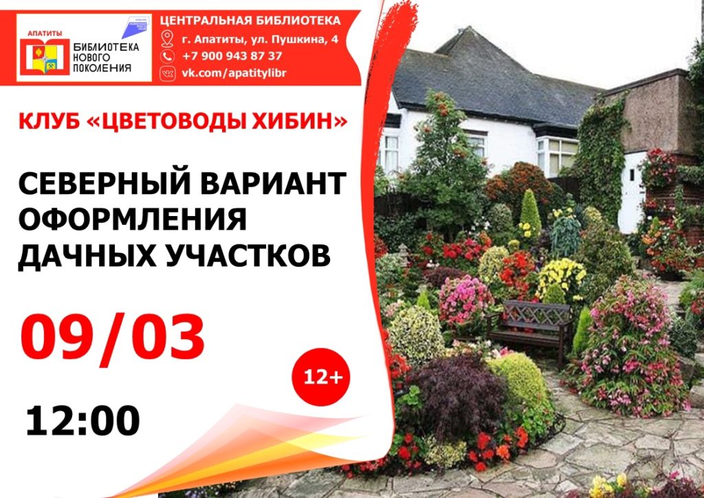 Северным садоводам тоже хочется завести на участке цветник, сделать оформление ярким, интересным. Но все ли кустарники и деревья выдержат наши зимы? Все ли травянистые растения успеют зацвести? Клуб «Цветоводы Хибин» приглашает в центральную библиотеку Апатитов на встречу «Северный вариант оформления дачных участков». О том, как создать маленький дачный Эдем на Севере (причем не голословно, а с примерами самых интересных участков из окрестностей Апатитов и Кировска!), расскажет сотрудница Ботанического сада Дарья Жуковская. Начало встречи в 12 часов. Адрес библиотеки — ул. Пушкина, 4.