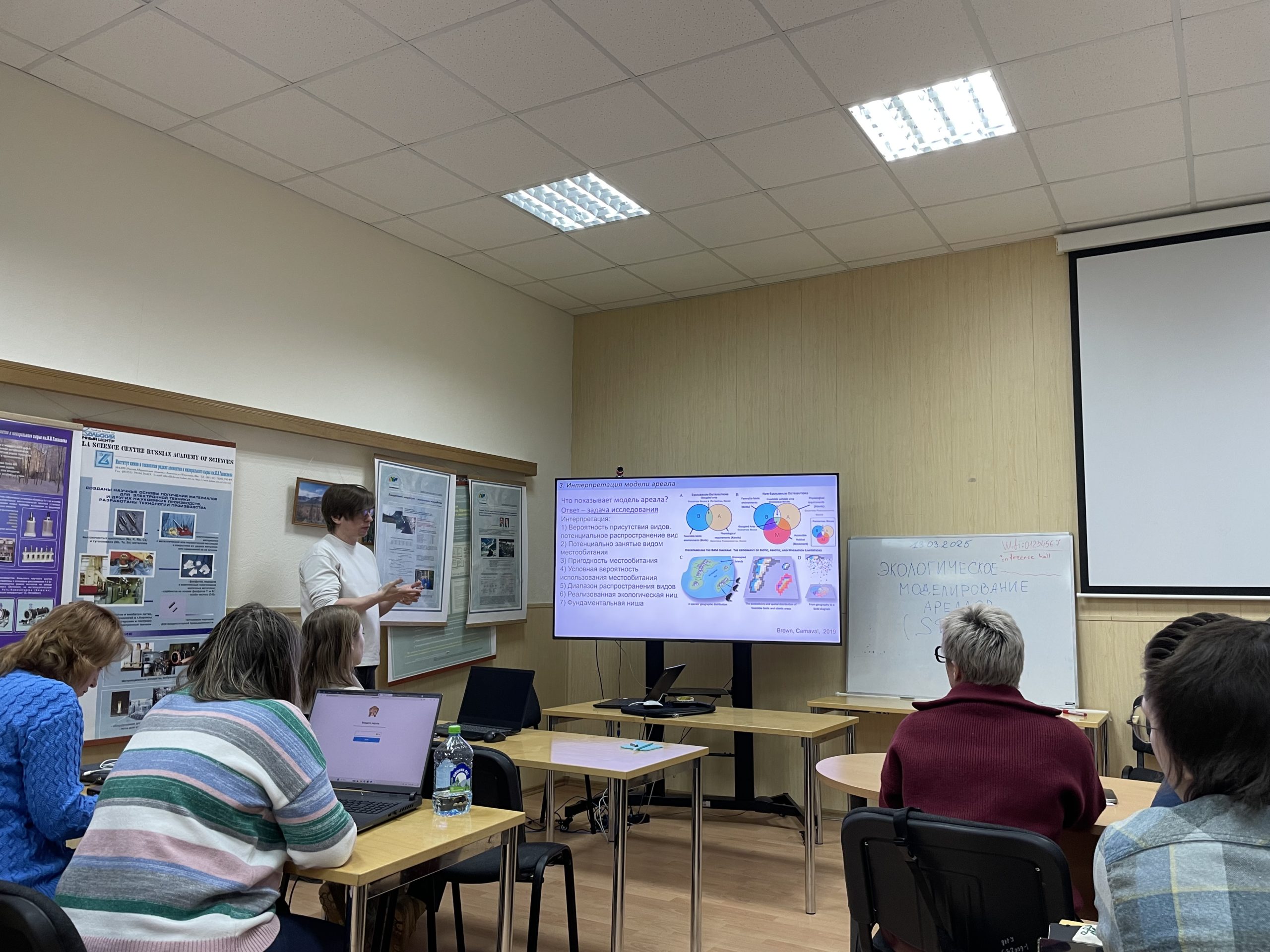 Пятый блок был посвящен использованию программной среды вычислений R, широко применяемой в различных областях науки. Использование модулей и самого языка программирования R открыли перед участниками широкие возможности по экологическому моделированию ареалов видов.